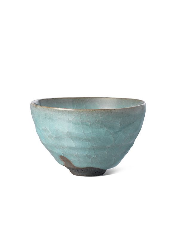 Porcelain tea bowl with a crazed celadon glaze, chawan